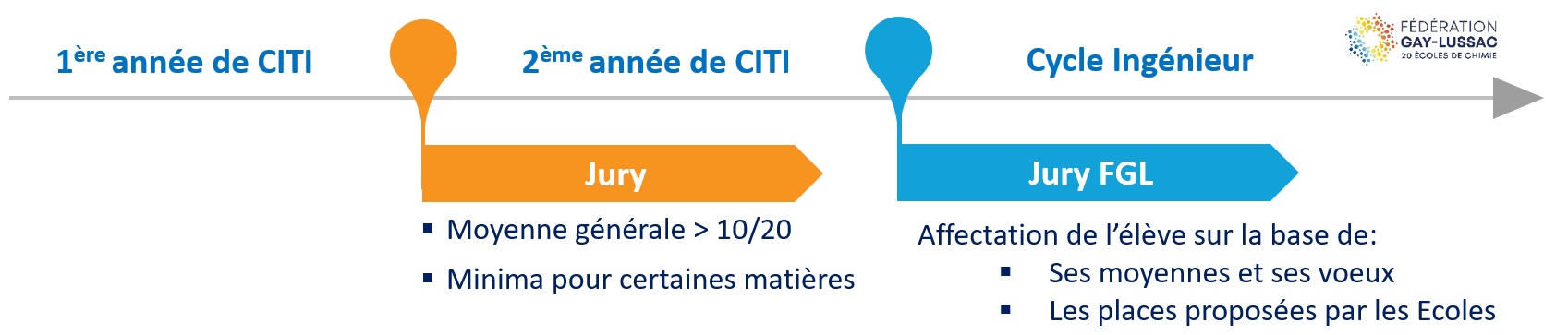 Ouverte à la rentrée 2020, cette nouvelle formation CITI pour Cycle Intégré Tremplin Ingénieur est destinée aux bacheliers STL (mention SPCL) pour les Ecoles d’ingénieurs en chimie et génie chimique de la Fédération Gay Lussac (FGL). Au cœur d’une Ecole d’ingénieur et sans équivalent parmi les offres de formation, CITI est un cursus en 2 ans qui constitue un véritable tremplin aux métiers d’ingénieur pour des lycéens titulaires d’un bac technologique. Cette classe ouvre une nouvelle opportunité à ce nouveau public avec un accès privilégié à la formation et au diplôme d’ingénieur chimiste