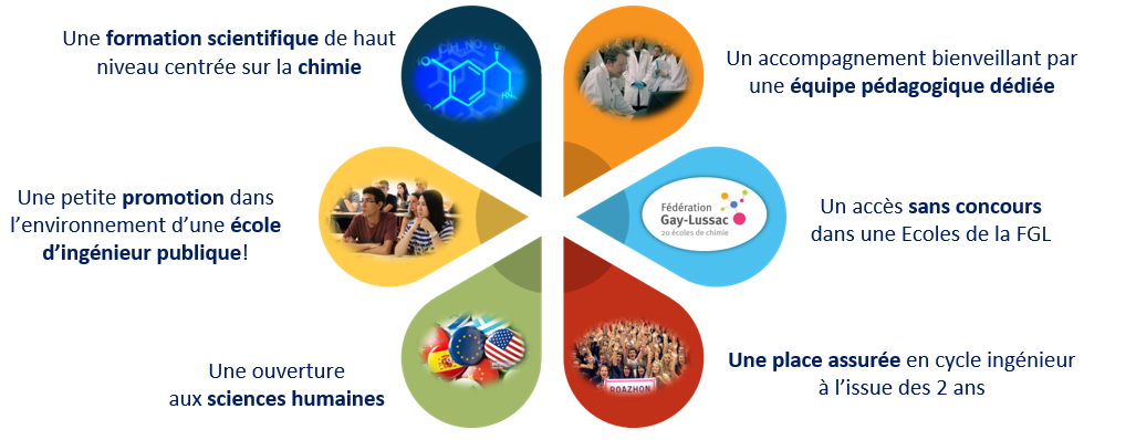 Cette classe est une voie privilégiée aux métiers de la chimie et s’adresse à tout élève de STL intéressé par une approche des sciences fondamentales fondée sur l’expérimentation. En effet, le programme pédagogique est conforme aux exigences du cycle ingénieur mais il est adapté à la formation antérieure de ces bacheliers afin d’assurer à l’élève le succès en Ecole d’ingénieurs. Un contrôle continu des connaissances conditionne le passage en 2ème année et l’accès sans concours à une Ecole d’Ingénieur de la Fédération Gay Lussac.