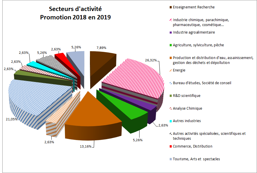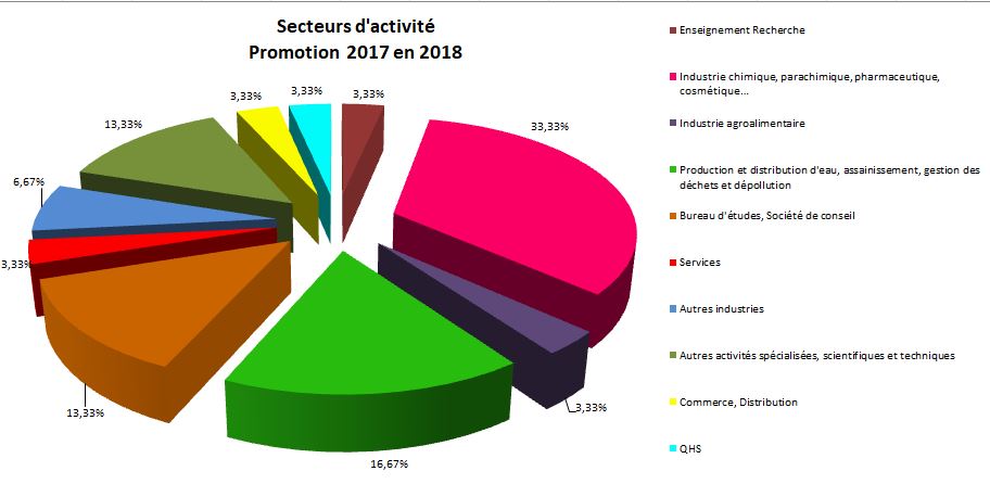 Voici la répartition annuelle des secteurs d’activités dans lesquels se placent les diplômés de l’ENSCR.